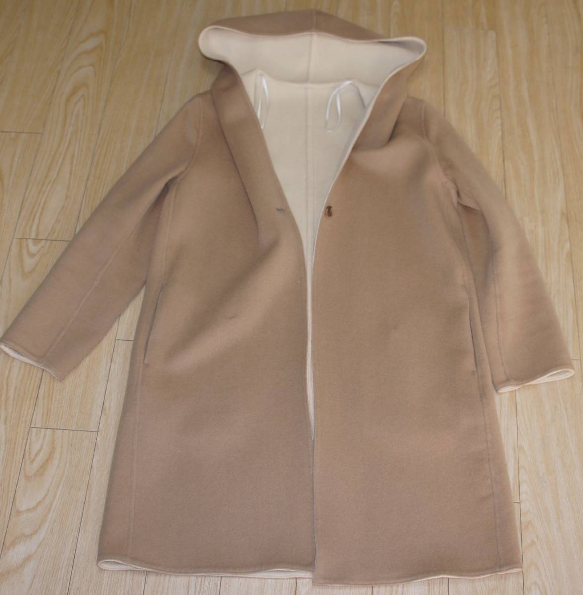 - ユニクロ ダブルフェイス フーテッドコート ベージュ レディース Sサイズ