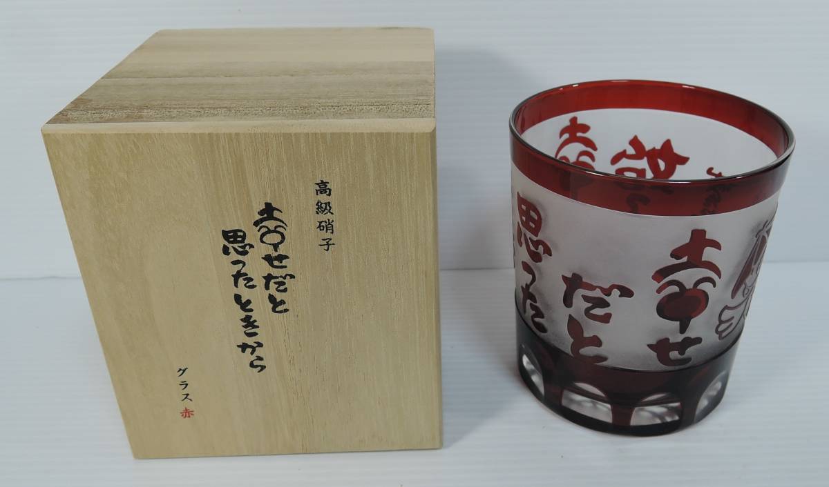 - ☆Z21■城たいが 「幸せだと思ったときから幸せが始る」 切子調 グラス■未使用