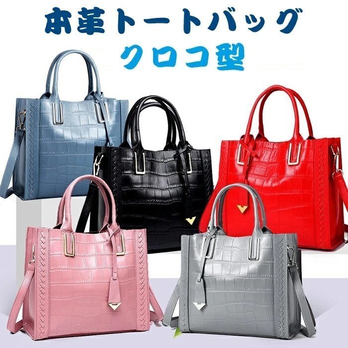 > 本革トートバッグ ?ショルダーバッグ レディース 本革クロコ型押しバッグ高品質本革 牛革 クロコダイル型押 本革鞄 モード ☆多色選択/1点