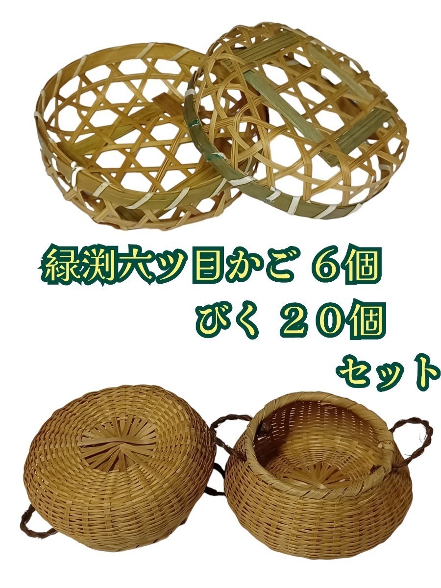 - 岩②)緑渕六ツ目かご 6個 びく 20個 まとめ売り 松花堂弁当 割烹 業務用 旅館 料亭 和食 仕切り 飲食店 ホテル 宴会料理 240109(M-1-2