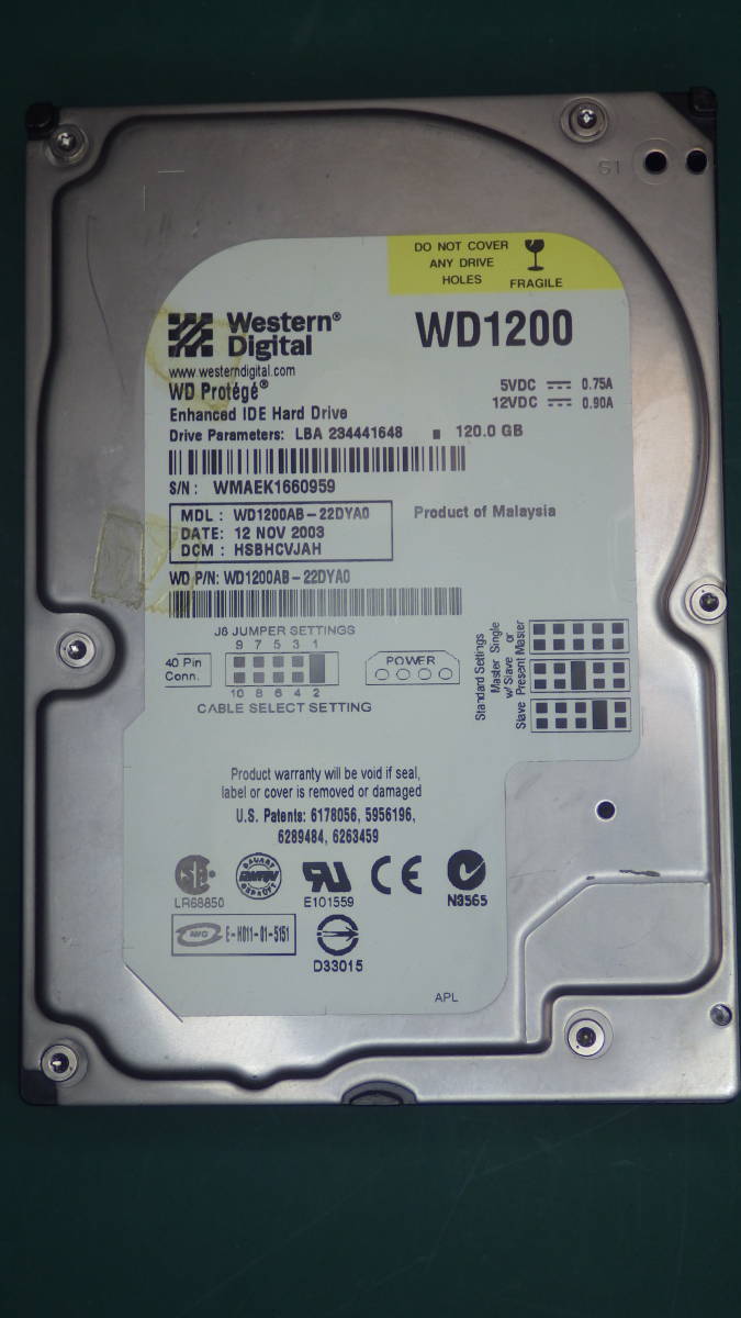 - WD 3.5intHDD UltraATA WD1200AB-22DYA0 120GB 動作確認済(120001)送料無料