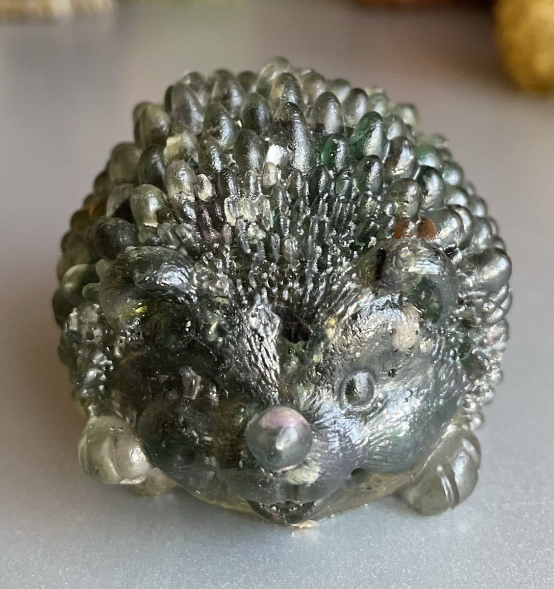 - ハリネズミのオルゴナイト グリーンクォーツ 天然石 置物インテリア パワーストーン 魔除 お守 風水晶 幸運 ラッキー 浄化 クリスタル
