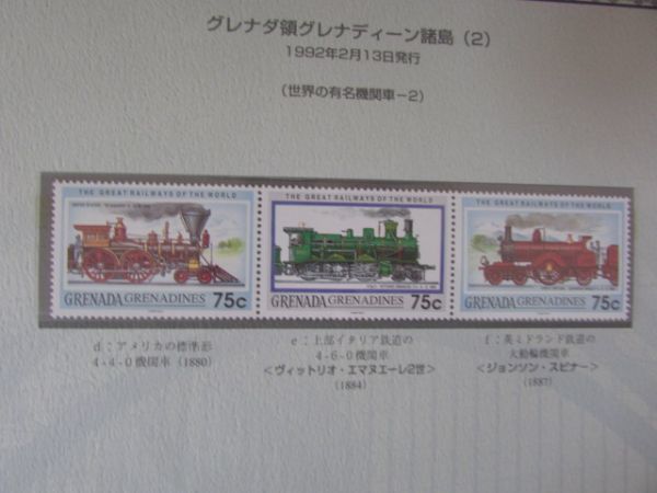 - E 世界の鉄道 グレナダグレナディーン 世界の有名機関車-2 3種完 1992.2.13