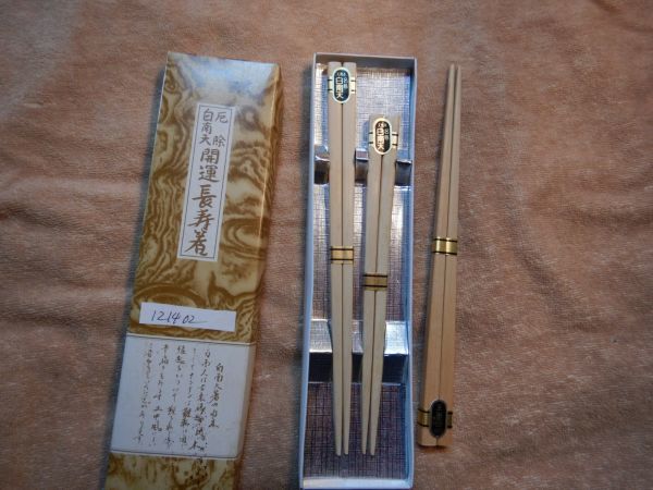 - 箸セット 121402 白南天 厄除 開運長寿ばし 夫婦箸+1本 22.5,19.5CM 天然木 未使用