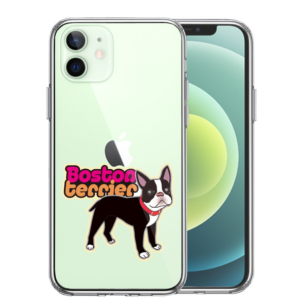 - iPhone12mini ケース クリア ボストンテリア 3 スマホケース 側面ソフト 背面ハード ハイブリッド