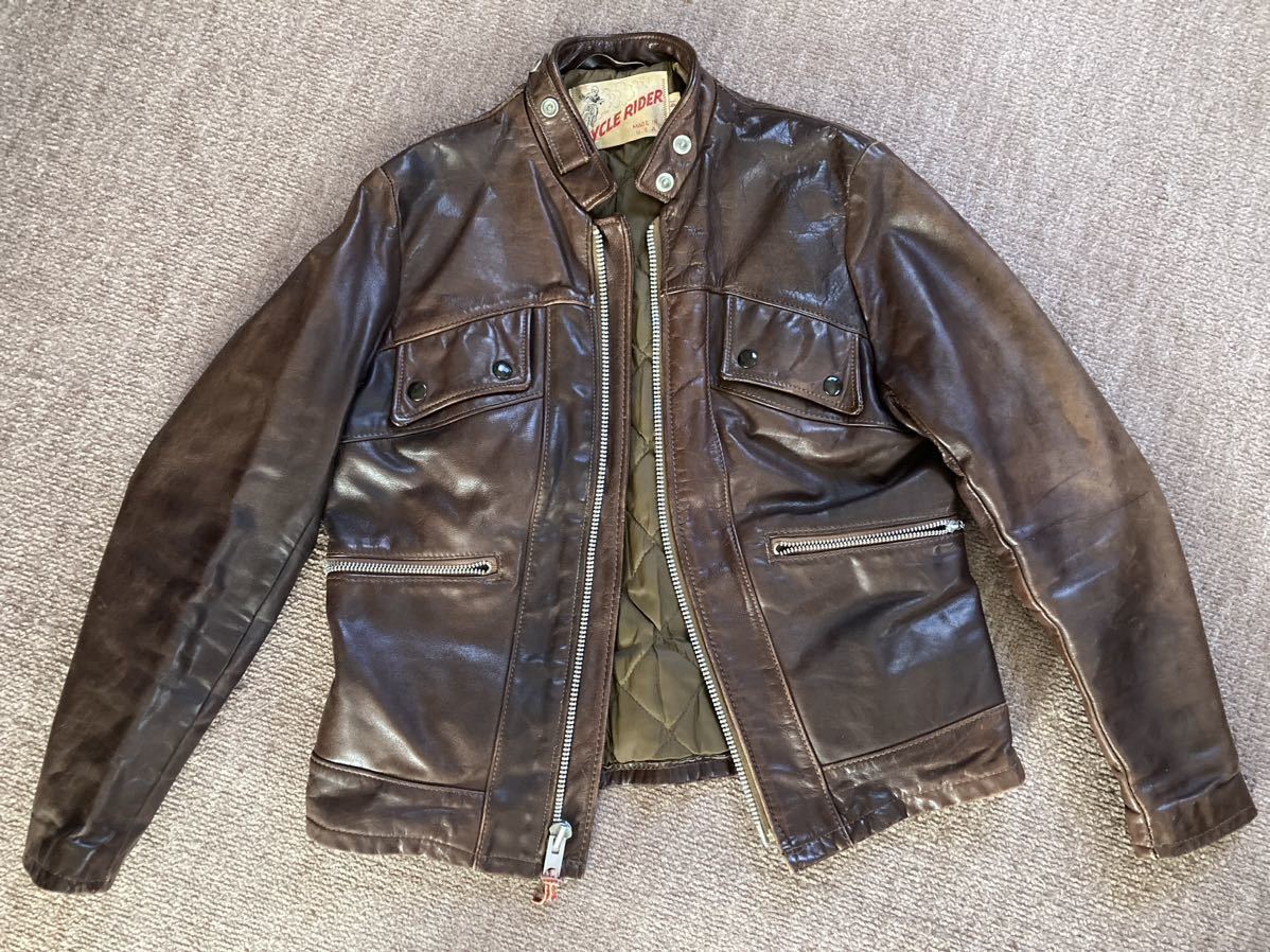 - USA製サイクルライダーブランド シングルレザージャケット こげ茶 サイズ表記14 XS〜S相当 フロントTALONジッパー可動スムーズ 中綿入り