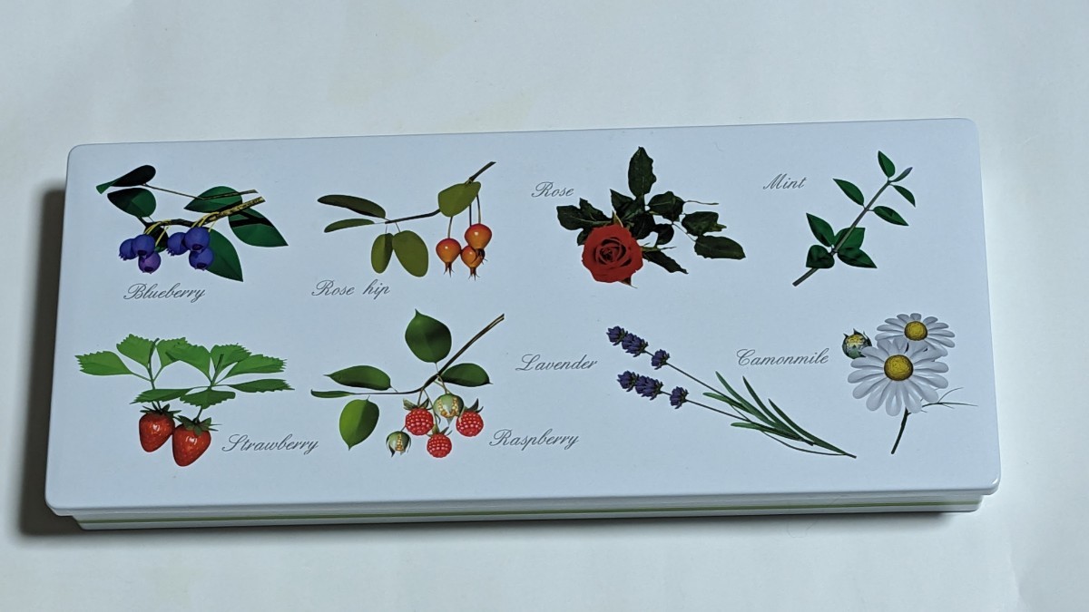 - 彩果の宝石 ハーブ缶 空き缶 果実・花模様