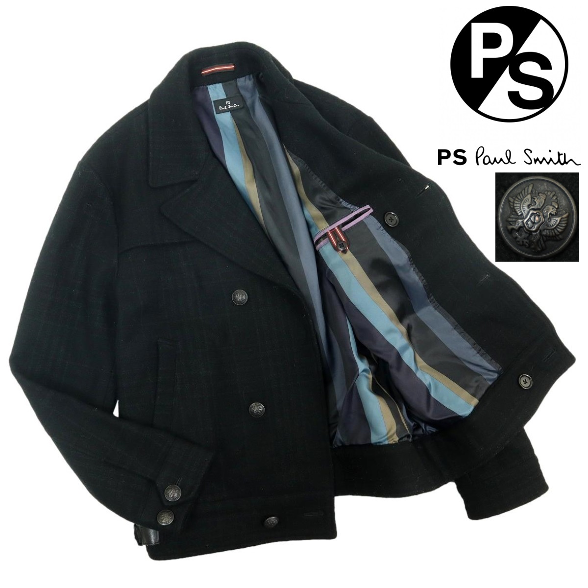 - 【B2765】PS Paul Smith ピーエスポールスミス ピーコート ウールジャケット ウールコート チェック サイズM
