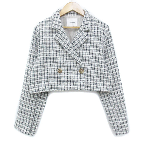 - ワンアフター アナザー ナイスクラップ ツイードジャケット テーラードジャケット ショート丈 総裏地 ダブルボタン F 白 黒 レディース