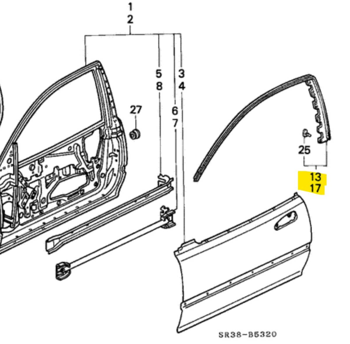 > ホンダ純正 シビック EG4 EG6 ドア サブシール ガラスモール 左右セット HONDA