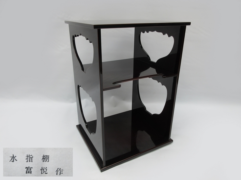 - 水指棚 ■ 富悦作 溜塗 紹鴎好写 二重棚 ■ 天然木 茶道具 組み立て不要 紙箱入り № 9399■