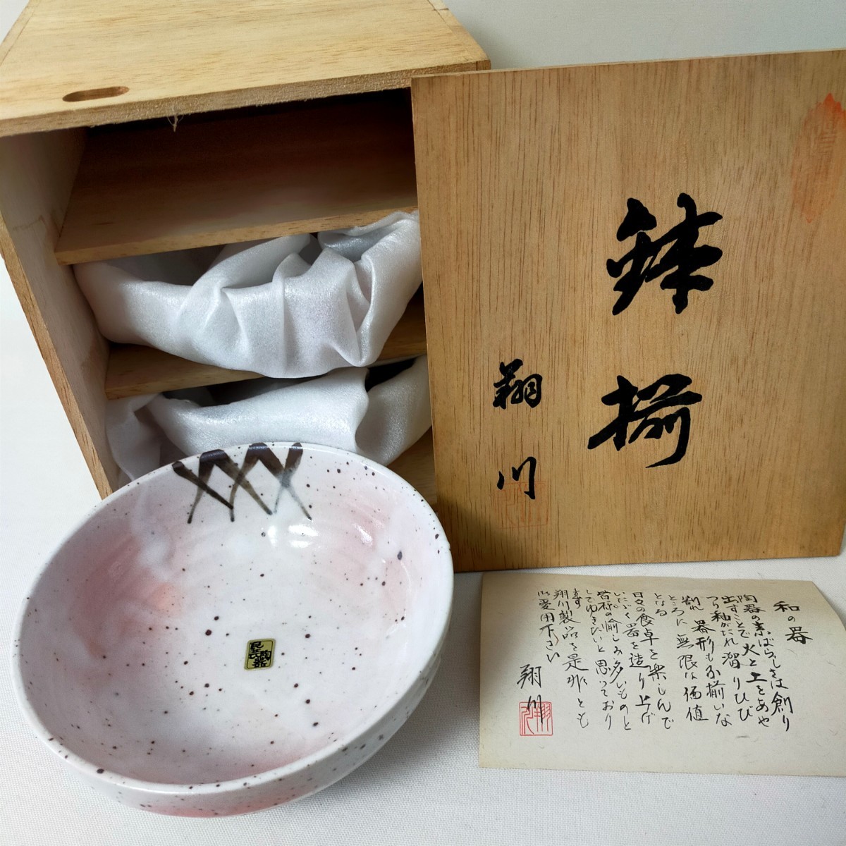 - ★未使用品★翔川陶器 鉢揃 木箱入り 桜志野 三組揃(輪島才箸)民芸陶器