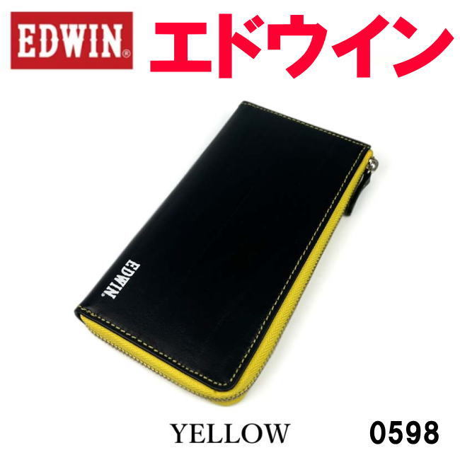 - イエロー EDWIN エドウイン 0598 バイカラー L字ファスナー 長財布 再生皮革