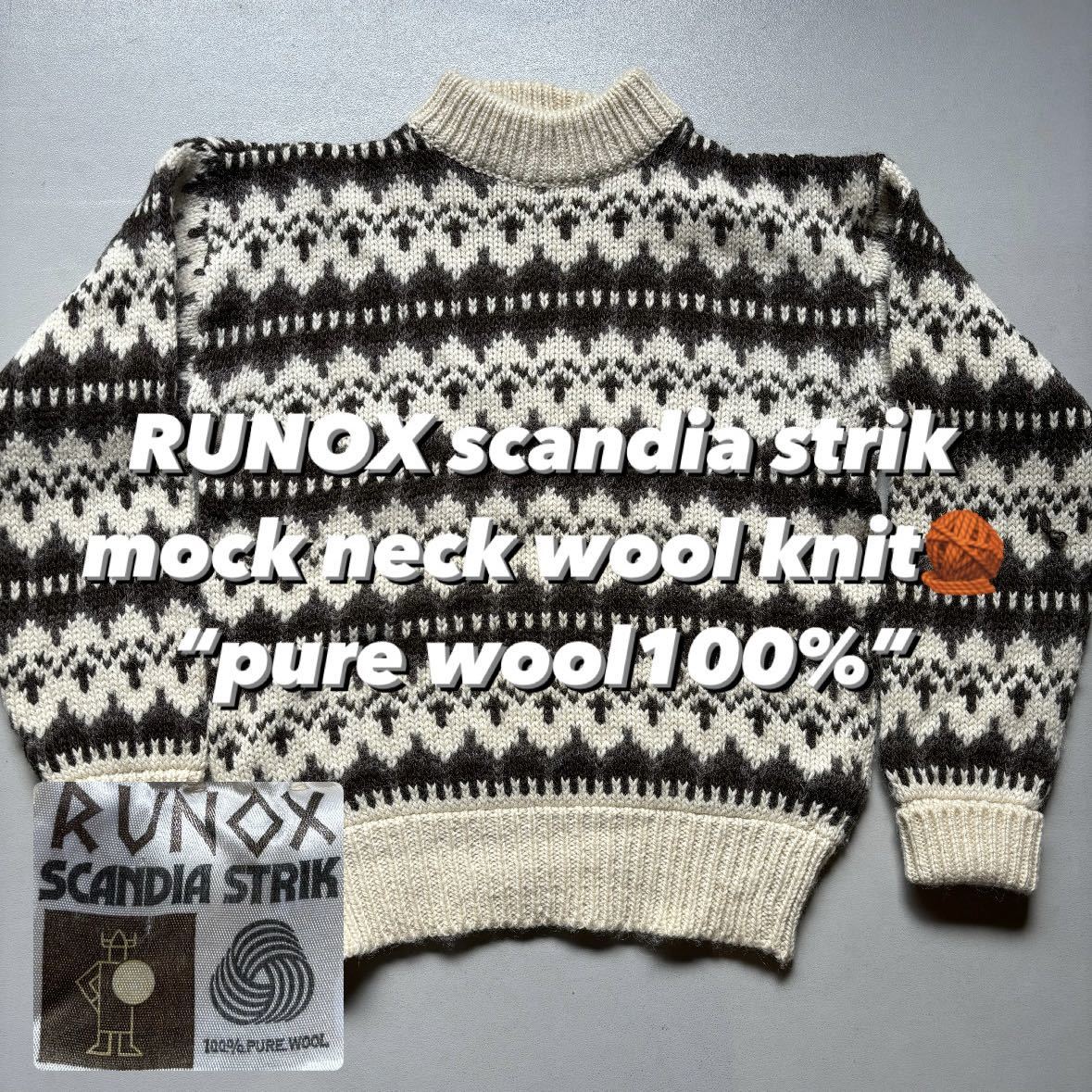 > RUNOX scandia strik mock neck wool knit “pure wool100%” モックネック ウールニット ピュアウール100% セーター 長袖 ボーダー