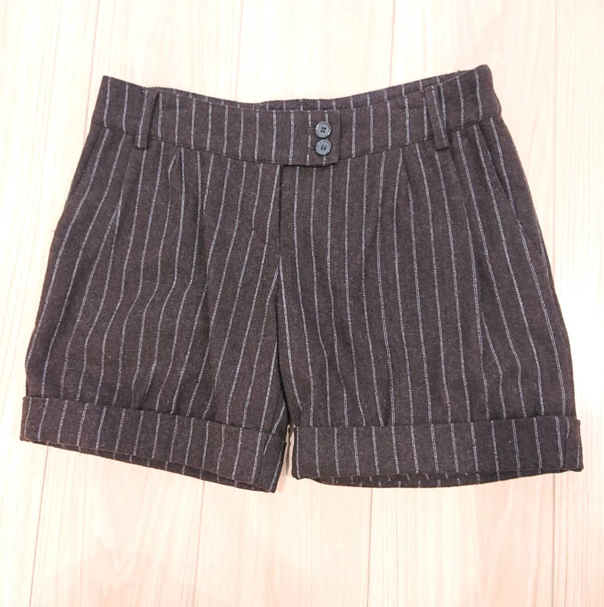 - LOVERSCONCERTO ショートパンツ 茶 ストライプ 秋冬 ウール サイズ38