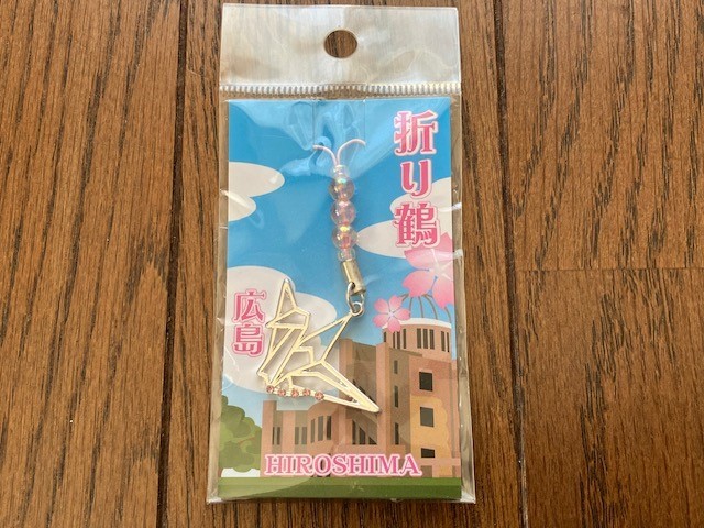> 広島 HIROSHIMA 折り鶴 金属製 根付け キーホルダー ストラップ 横3.5cm 縦2.5cm 原爆ドーム 新品 未開封 送料無料 底値