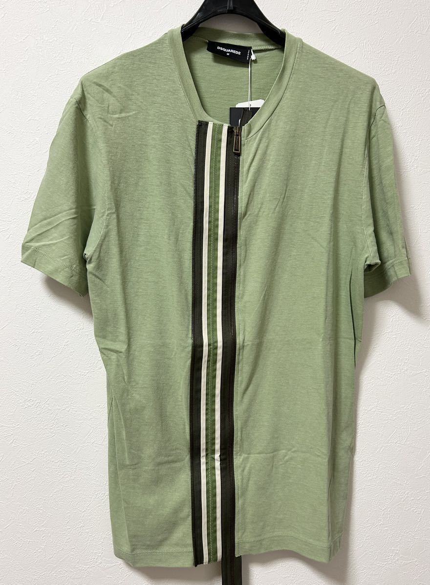 - 【新品タグ付】Dsquared2ディースクエアードジップアップTシャツ/イタリア製/Mサイズ/モスグリーン