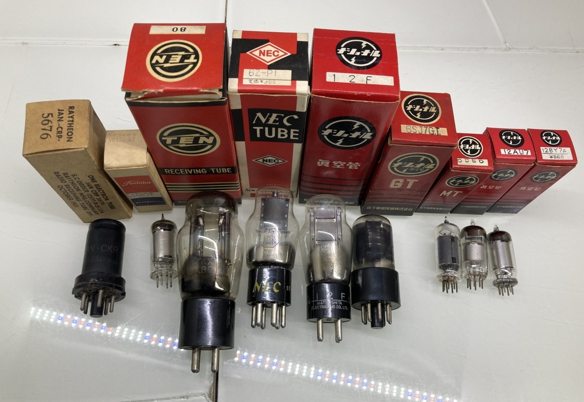 > # # 真空管 GT管 MT管 ナショナル NEC 東芝 TEN RAYTHEON 12BY7A 12AU7 6BE6 6SJ7GT 12F 6Z-P1 80 VR150-MT CKR-6C5 計8個 #O-211124