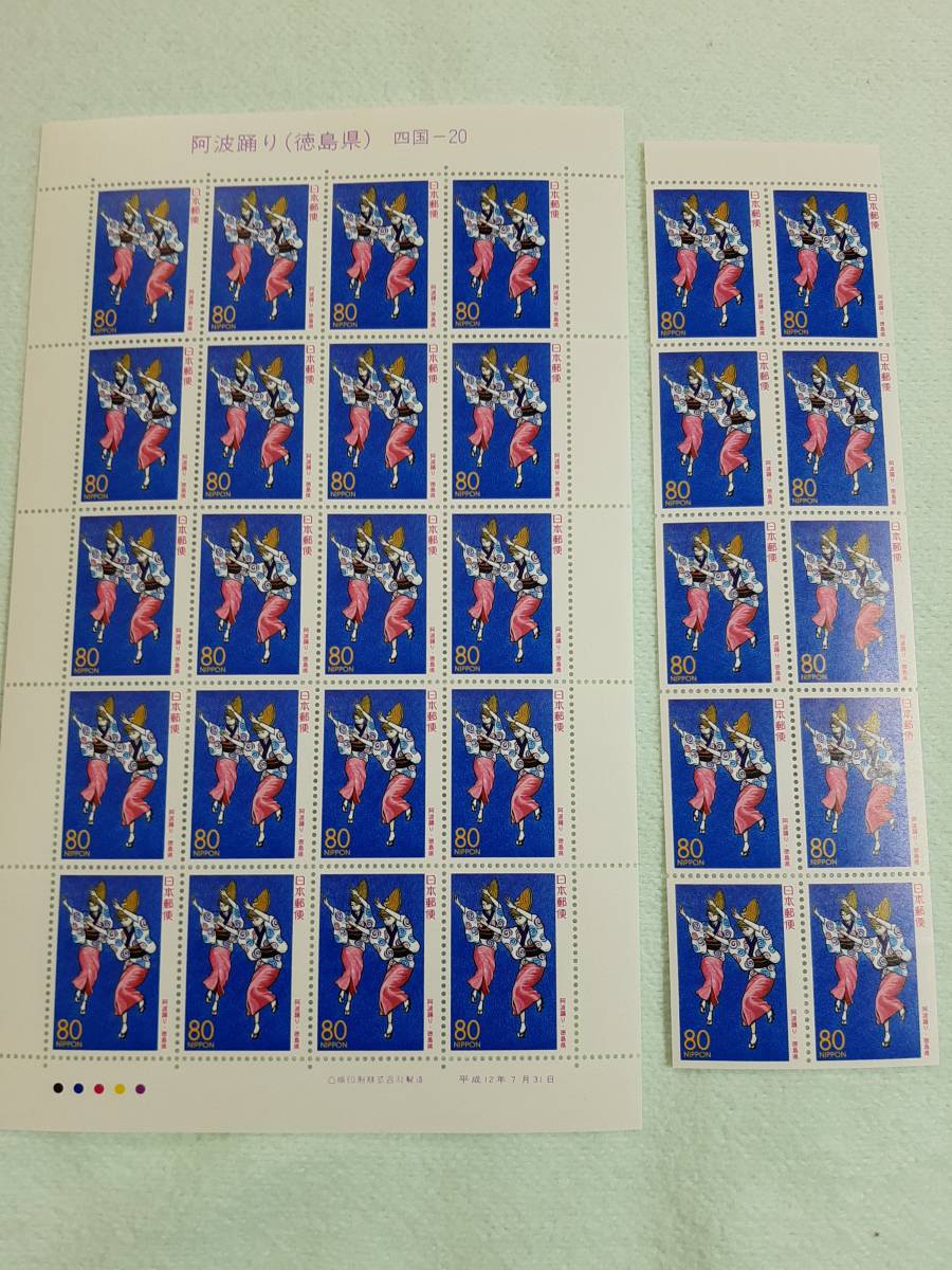 ふるさと切手 阿波踊り(徳島県)四国-20 H12 切手シート1枚と10枚シート