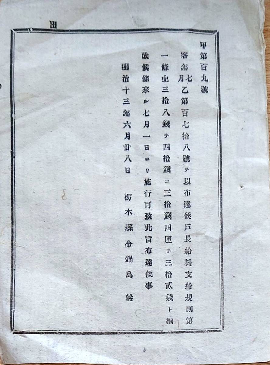 - f24012925〇明治布告布達 戸長給料 確定 栃木県 明治13年〇和本古書古文書