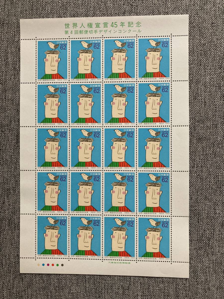 - ★未使用 世界人権宣言45年記念 第4回 郵便切手 デザインコンクール 浅羽壮一郎 平成5年 1993年 切手シート 62円20枚 日本郵便