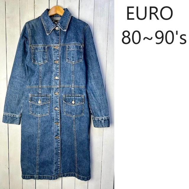 - ヨーロッパ古着 80s~ RL デニムワンピース コート S オールド ヴィンテージ ユーロ ポルトガル製 ロング丈 長袖 厚手 ★219