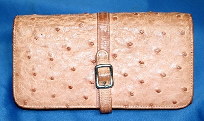 - かぶせ長財布 オーストリッチ 本革 レディース 大容量 多収納 中古品る