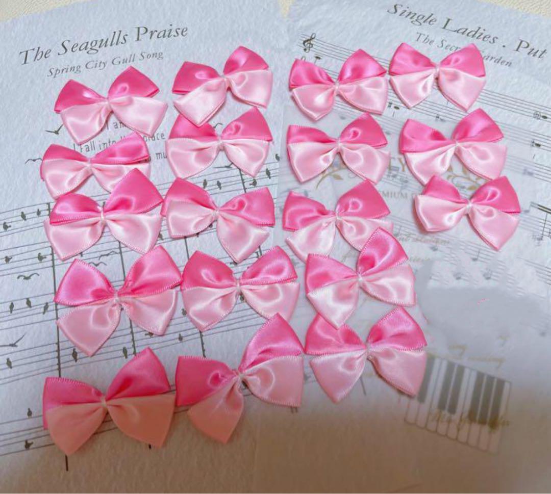 - Y78 ピンク色ミニサテンリボンモチーフ 18個