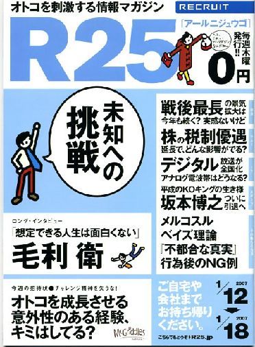- リクルート情報誌「R25」NO.125毛利衛・榮倉奈々