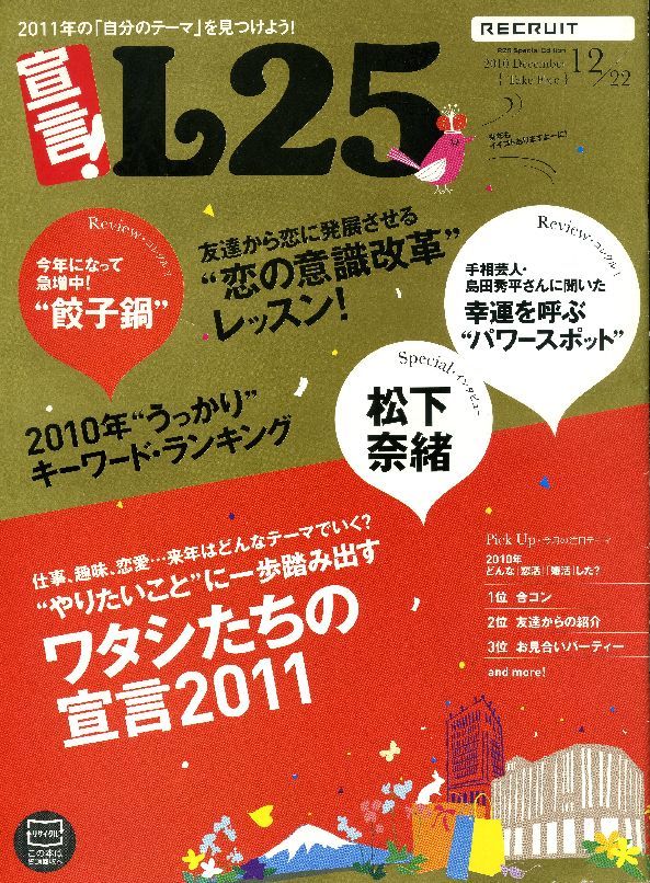 - リクルート情報誌「L25」NO.130松下奈緒、島田秀平