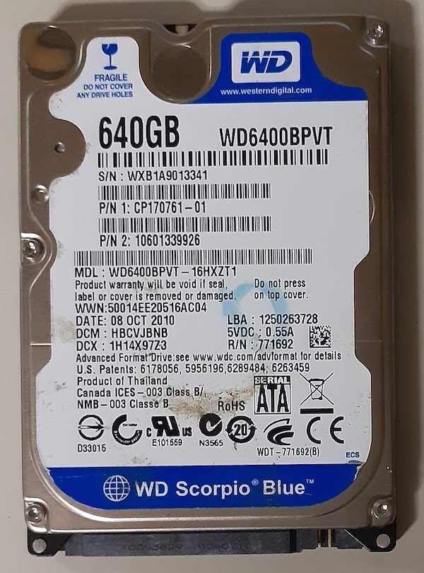 - 4188 2.5インチ 内蔵SATAハードディスク 9.5mm 640GB WD6400BPVT-16HXZT1 富士通 LIFEBOOK AH530B Windows7Homeリカバリ領域 12277時間正常