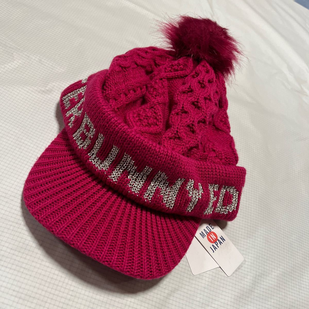 - 新品正規品 マスターバニー パーリーゲイツ ポンポン付き ニット帽 ニットキャップ 唾付き ピンク 送料無料