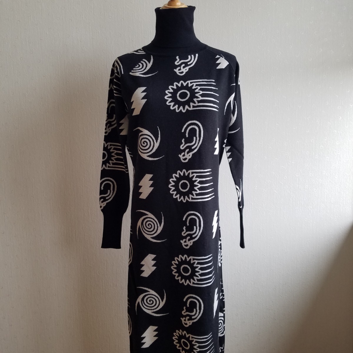 - JOHN SMEDLEY × ASHLEY WILLIAMS ジョンスメドレー ニットワンピース ロングワンピース 総柄 ブラック