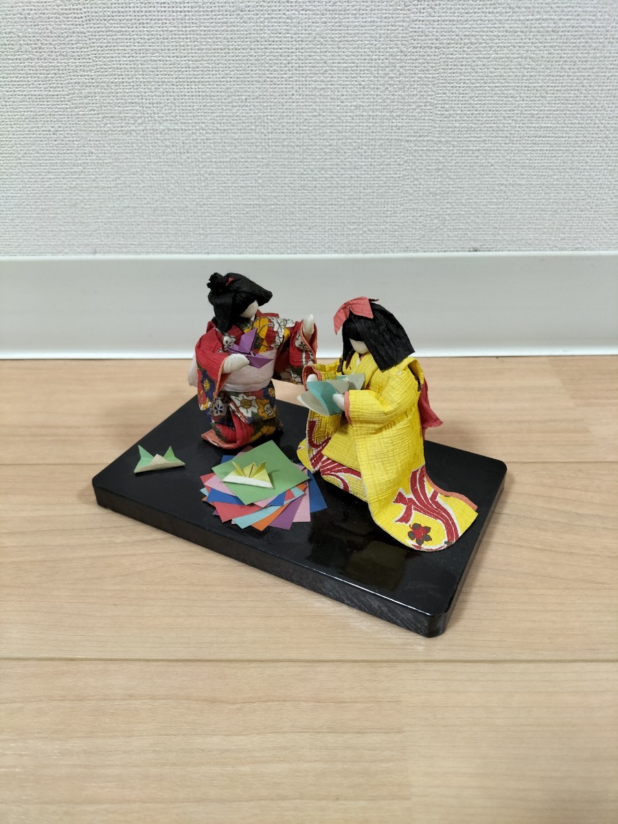 - 折り紙で遊ぶ女の子 日本人形 着物 和紙 コレクション 和風置き物