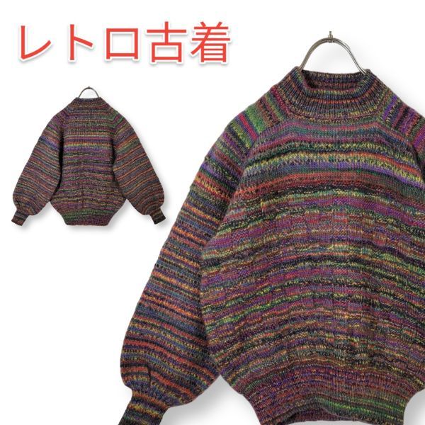 > 【美品】レトロ 90s ミックス ウール ニット セーター かわいい カラフル マルチカラー オーダーメイド品 ハンドメイド