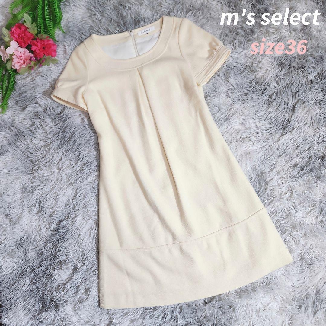 - m's select カシミア&アンゴラ混 ウール素材・半袖ワンピース 表記サイズ36 S クリーム系 82643