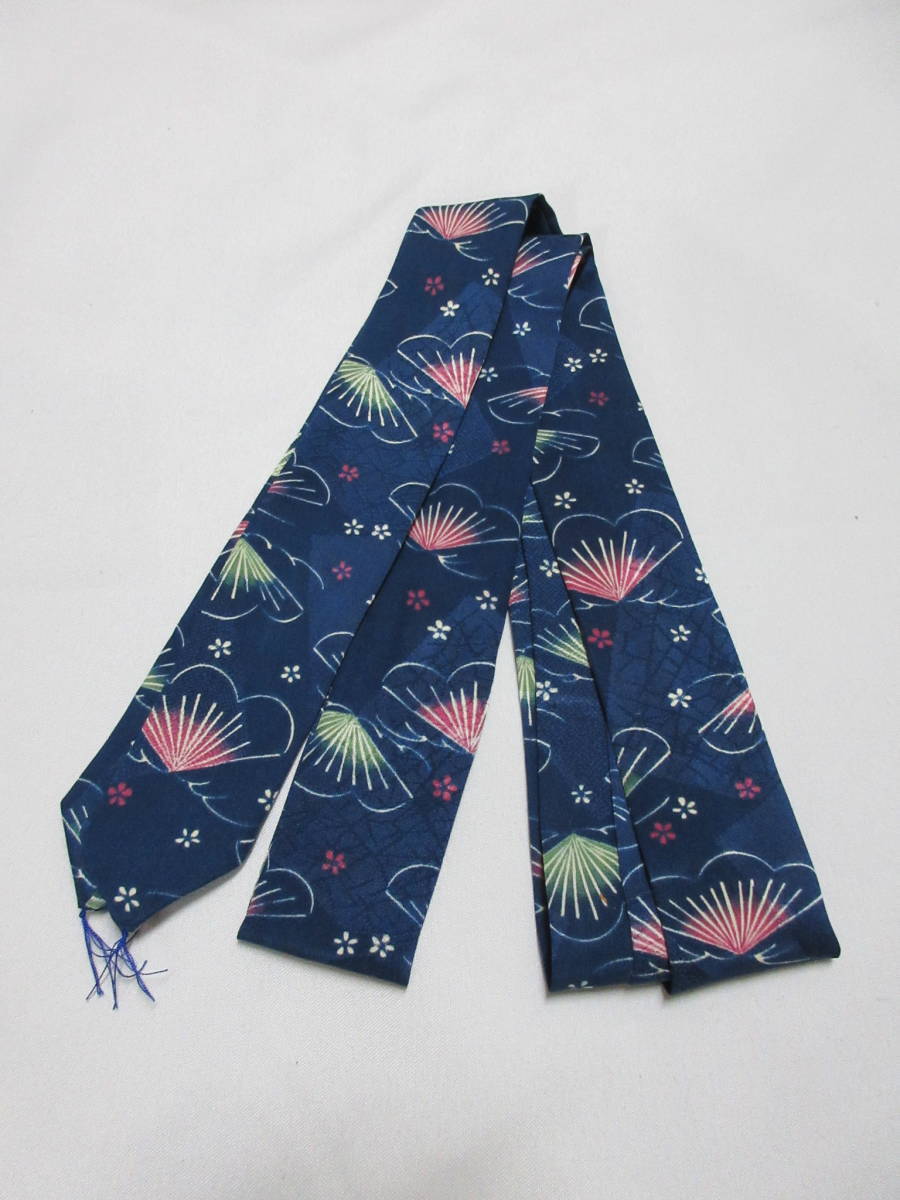 - ◎創作品 お洒落な腰紐 正絹 腰紐 襷(たすき) 長さ2.25m 巾 約5.0㎝ 紺地 ド0025