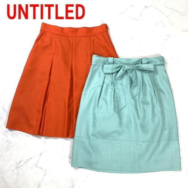 > A387 アンタイトル ひざ丈スカート 3点セット まとめ オレンジ 黄緑 UNTITLED 裏地あり ライトグリーン ミント ウエストリボン ベルト 2