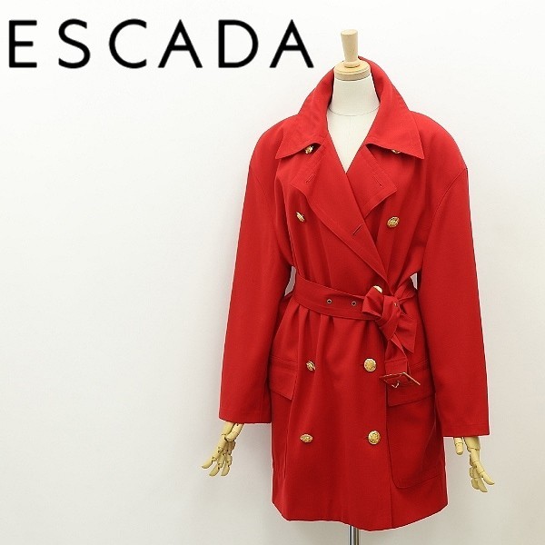 - ヴィンテージ◆ESCADA エスカーダ 金釦 ベルテッド ダブル コート 赤 レッド 36