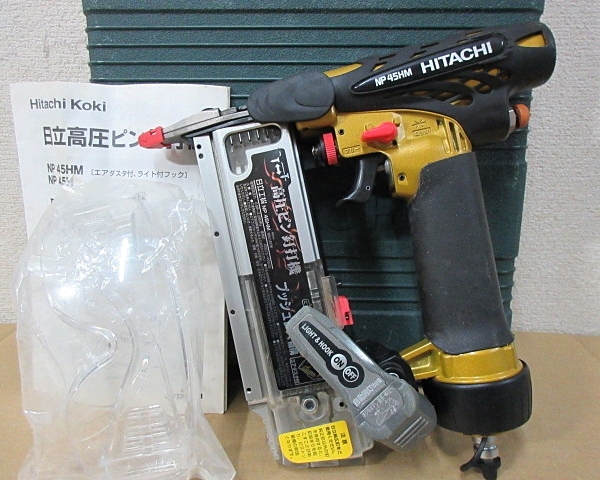 - S5599 中古 日立工機 NP45HM 45mm 高圧 ピン釘打機 エア釘打機 15~45mm 取説&保護メガネ付
