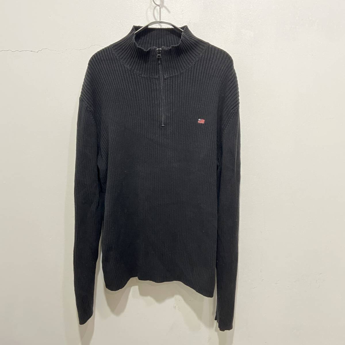 - 送料無料☆POLOJEANS☆ラルフローレン☆ハーフジップコットンセーター☆リブ編みニット☆ワンポイントロゴ☆星条旗☆ブラック☆XL☆B24M