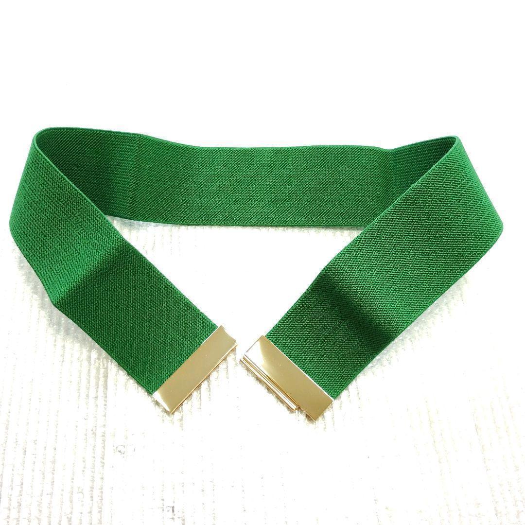 - 【緑色】5cm【ゴールドバックル 幅広 ゴムベルト】レディース