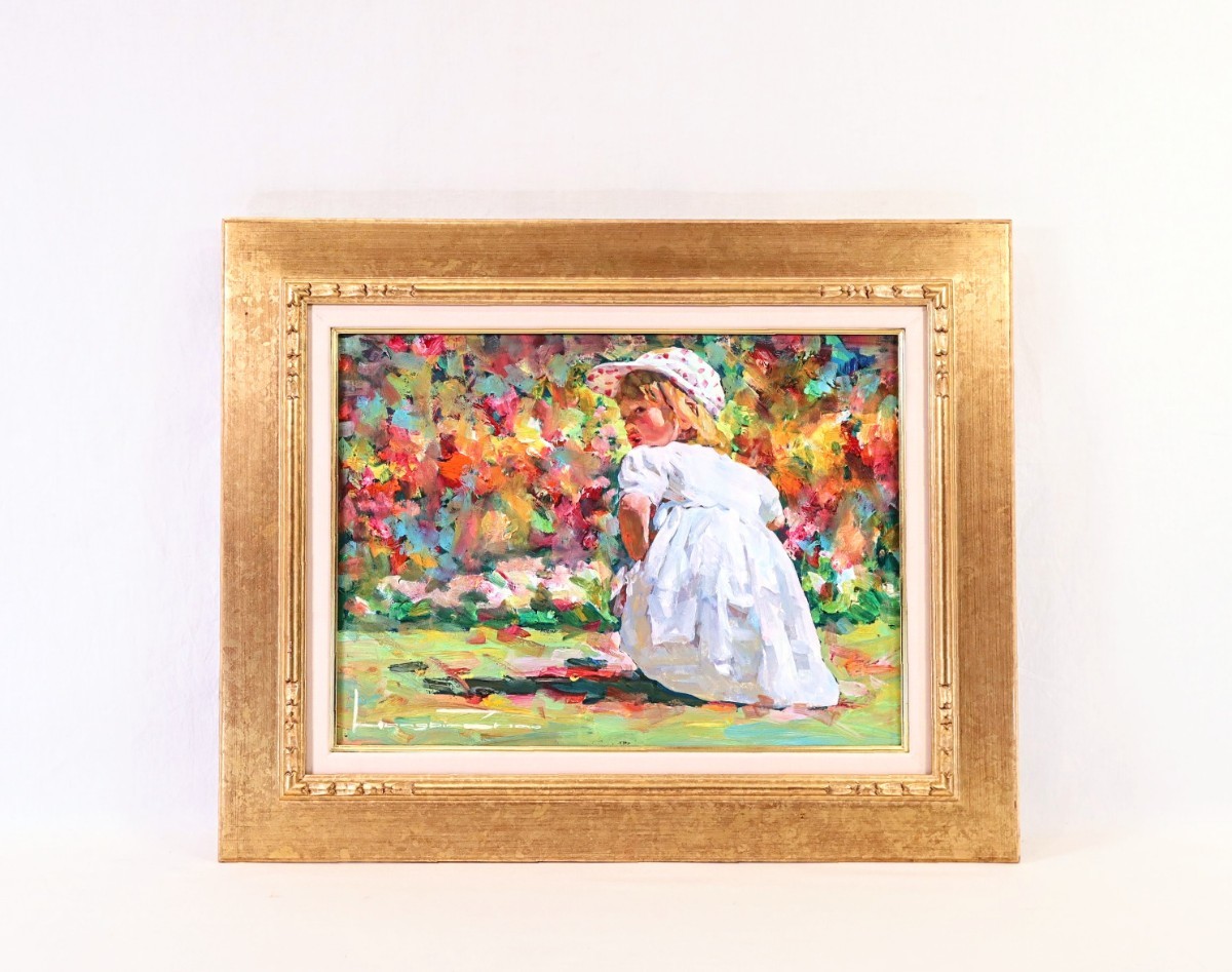 - 真作 ホンビン・ヅォー 油彩「花の庭にて」画寸 P8 中国人作家「東方のモネ」鮮やかな色彩に無邪気に遊ぶ子ども 観る人が笑顔になる 8568