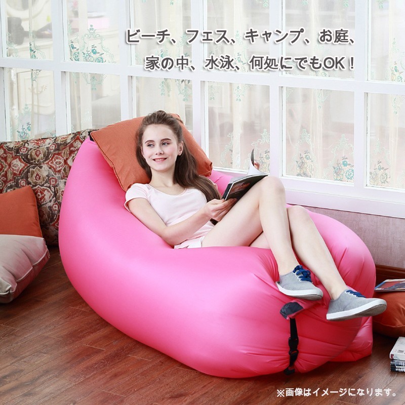 > アウトドア用品 エアーソファー公園エアーベッド エア クッション 濃いピンク 海水浴 キャンプ アウトドア 空気入れ不要 コンパクト 収納