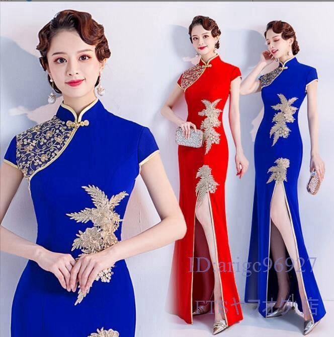 - A1548☆新品チャイナドレス パーティドレス ロングドレス チャイナ服 ワンピース スリット青 赤 小さい~大きいサイズ 二次会 発表会 舞台