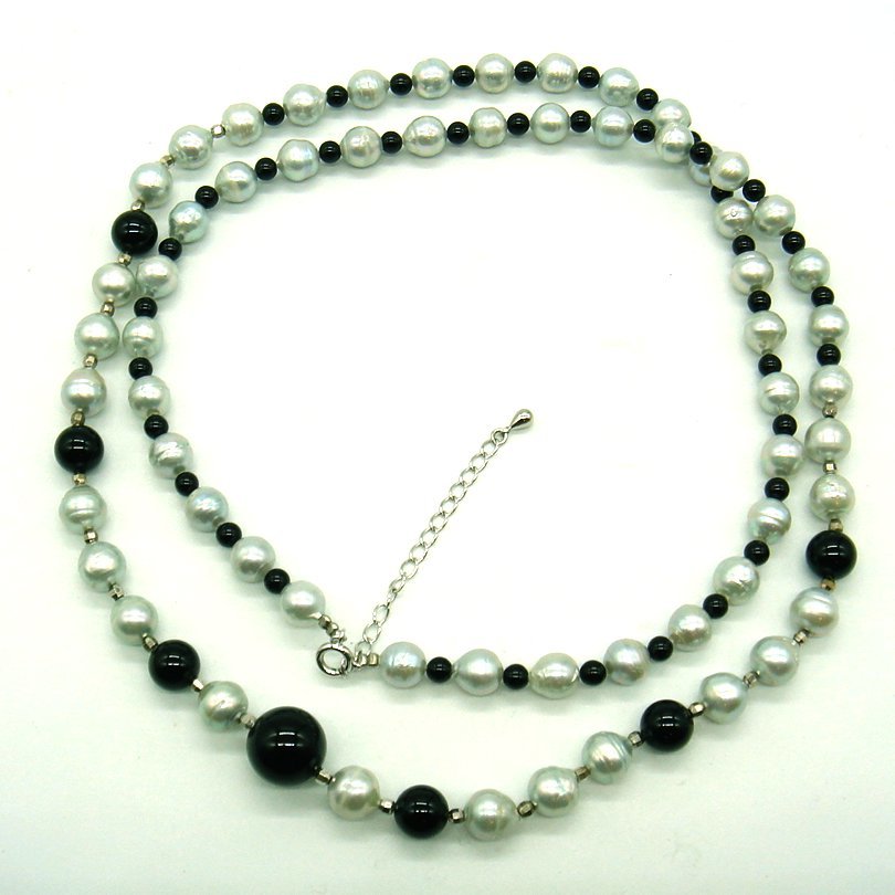 - PL264:SV 調色あこや真珠(7-7.5mm) オニキス ロング(75cm) ネックレス