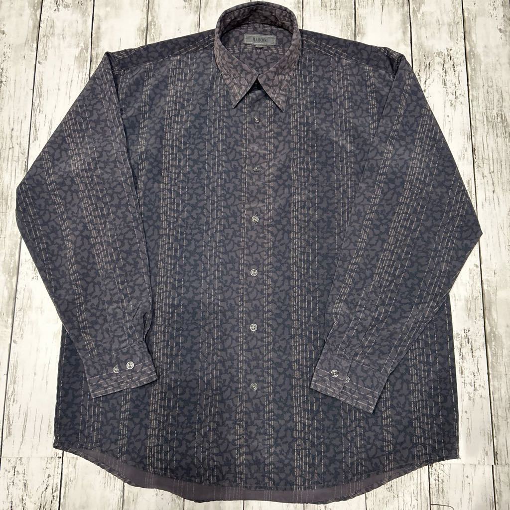 - MARCONI 総柄 柄シャツ レトロ アート ビンテージ レオパード 長袖シャツ ポリエステル