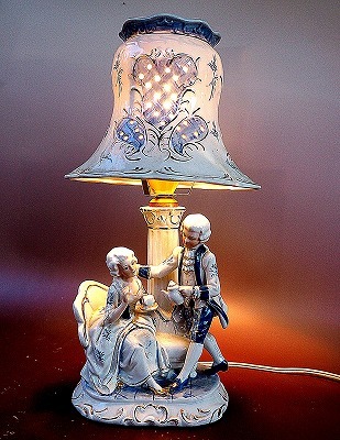 - 加藤工芸 アンティーク調 陶器 スタンドライト テーブルランブ 中古美品 ハンドペイント 手描き 作動確認済