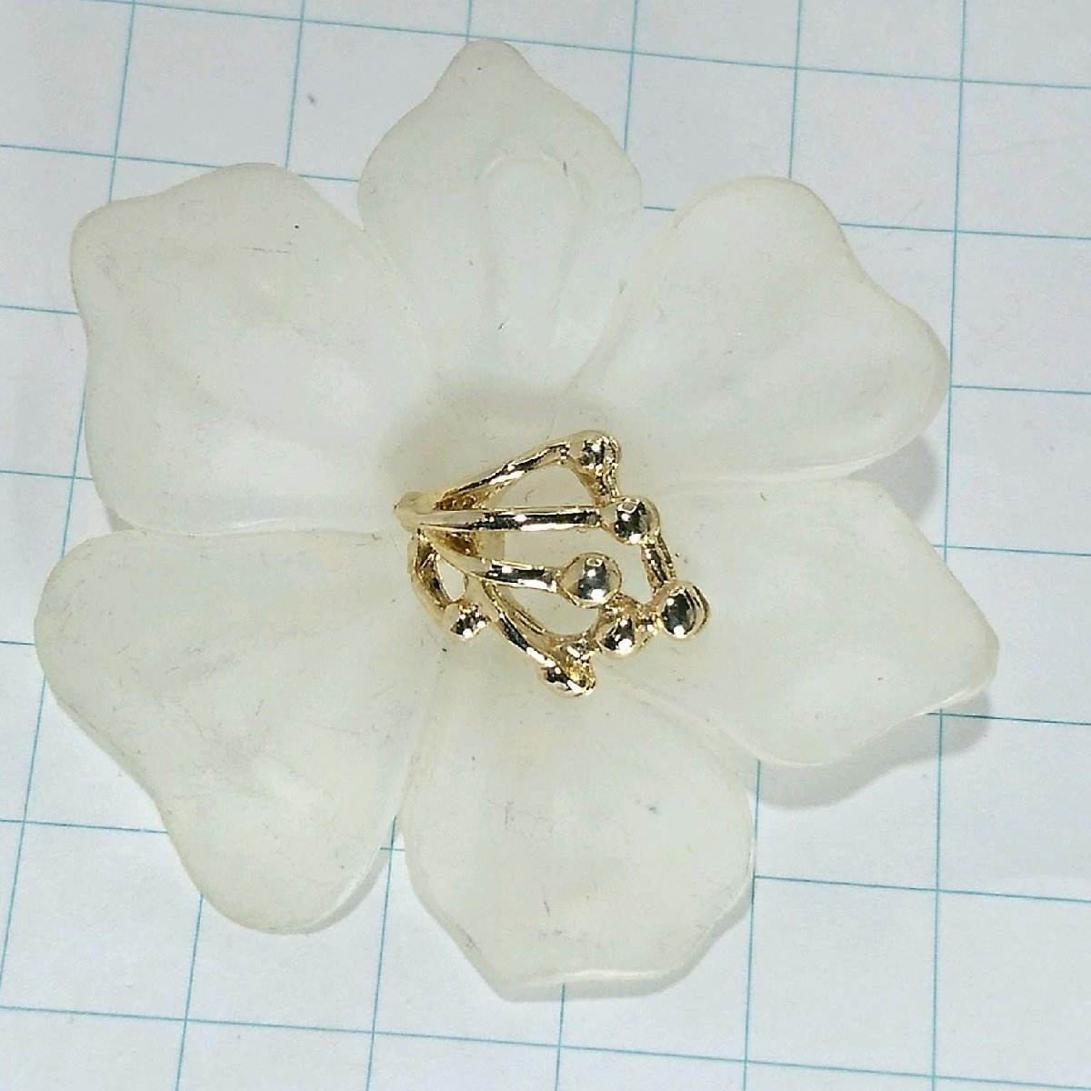 - 送料無料)ビンテージ☆白花モチーフ☆アンティーク ブローチ A22735