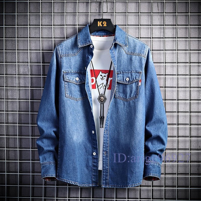 > T472☆新品メンズ デニムシャツ シャツ 長袖シャツ カジュアルシャツ アウター ジャンパー 大きいサイズあり ブルー L